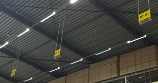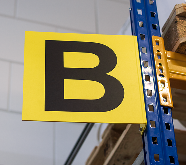 In uw magazijn is de keuze voor het type identificatie van bijvoorbeeld bulklocaties, zones en in- en outbound opslaglocaties mede afhankelijk van de hoeveelheid werkverkeer. Wanneer heftrucks en reachtrucks dagelijks af- en aanrijden, zijn vloerlabels niet aan te bevelen. In plaats daarvan kunt u kiezen voor magazijnborden die u bevestigt aan het plafond. Er zijn verschillende opties om de magazijnborden aan uw plafond te bevestigen: