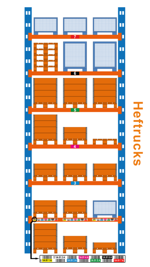 De hersenen herkennen kleuren onbewust, zonder erbij na te denken, in tegenstelling tot teksten en cijfers. Uw operators zullen hierdoor sneller een palletlocatie associëren met een kleur en dus sneller werken.